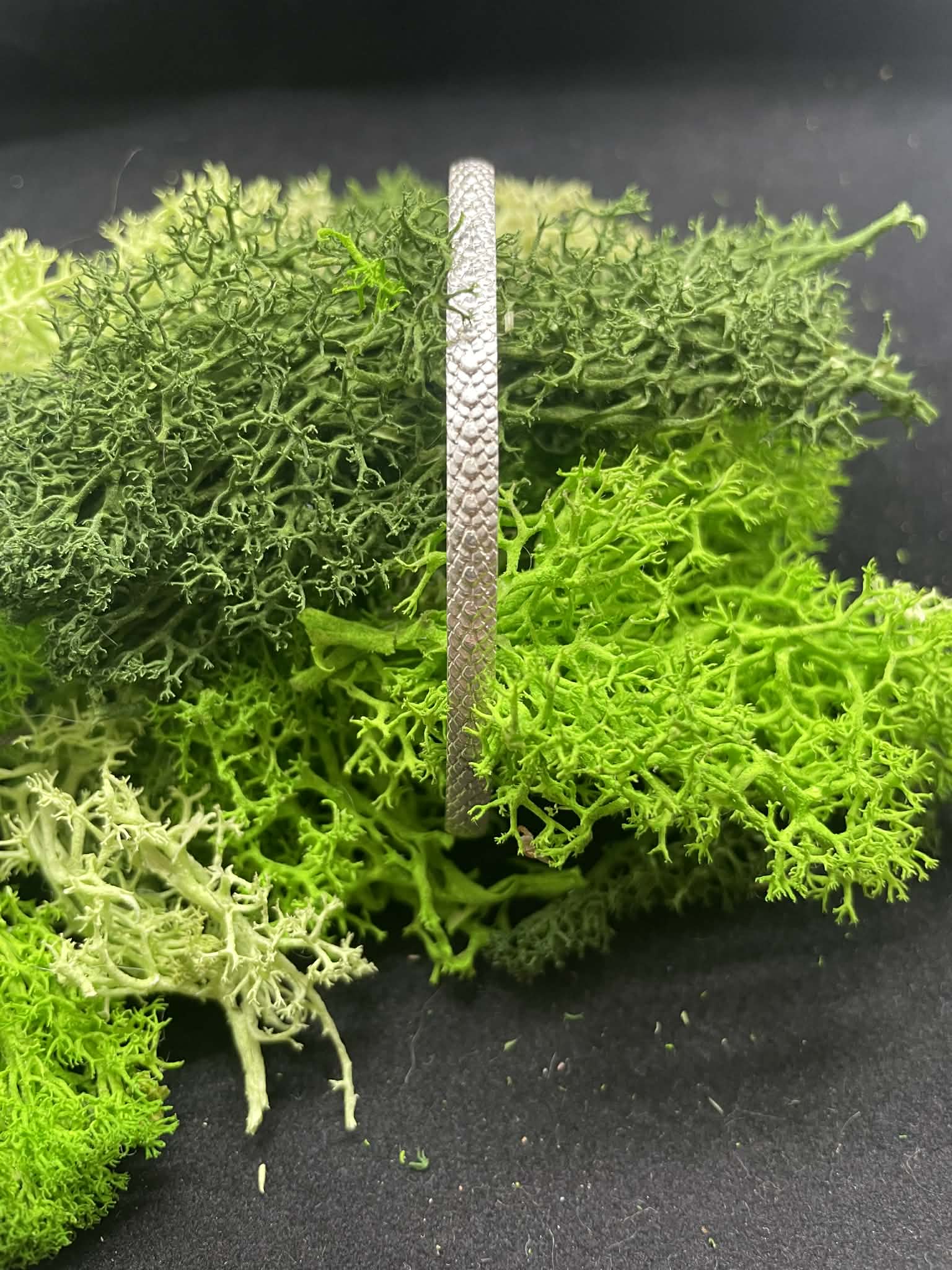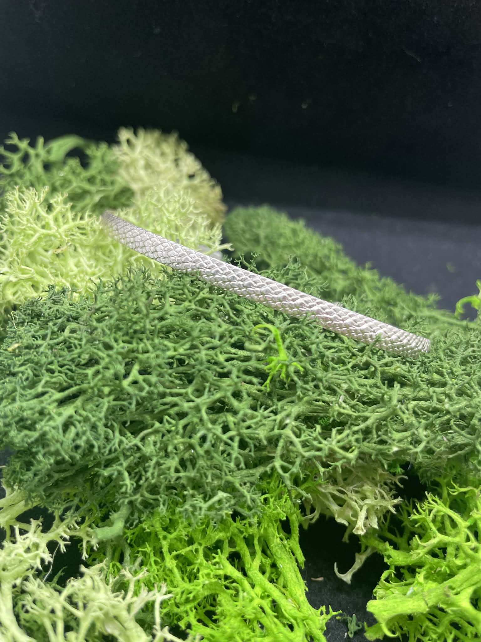 This is one of our newer items we have made. Our Dragon skin bracelet goes great with our dragon eye ring or dragon earrings. Made out of solid sterling silver, the textured look makes you feel adventurous.